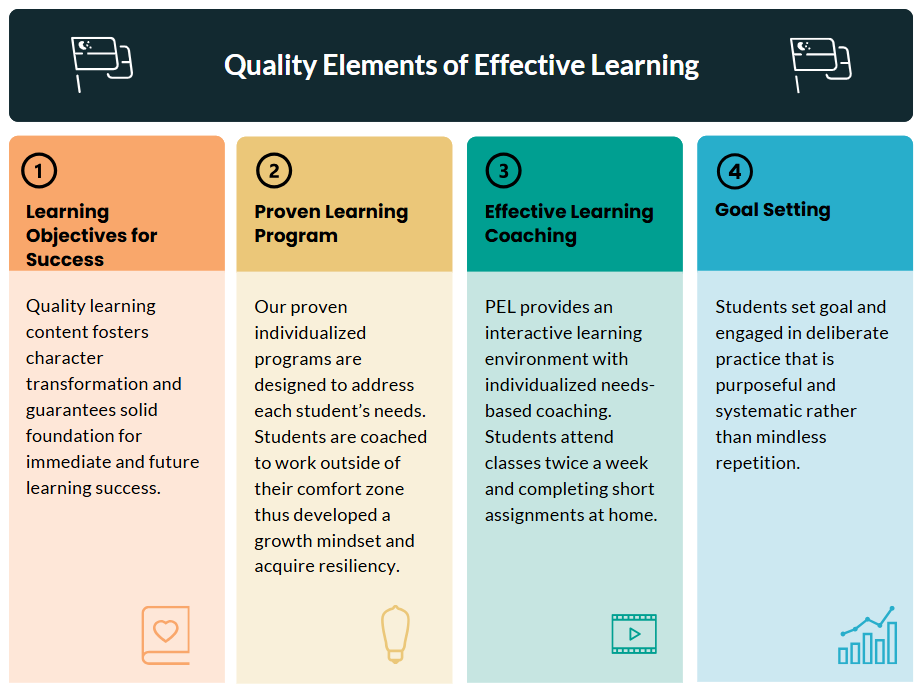 - Data-Driven Results – Besides the numerous excellent awards that PEL received, national & global studies show these methods boost test scores, and foster confidence, critical thinking, and a lifelong love of learning.